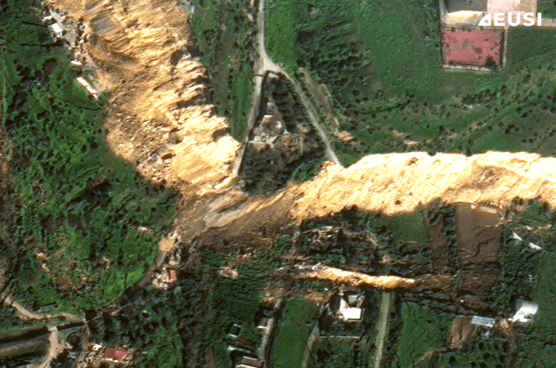Possibly undermined buildings suggest a high risk of further collapse. Satellite imagery © 2026 Vantor Provided by European Space Imaging