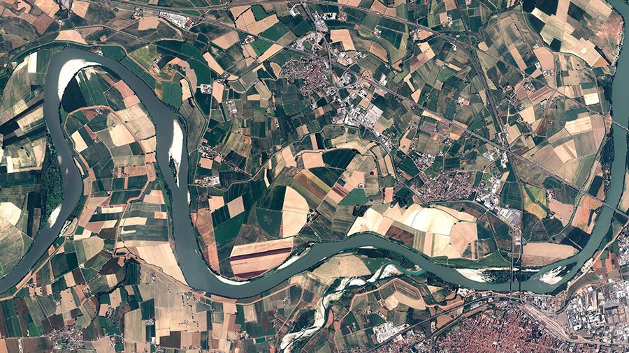 According to the report “Drought in Europe” released in July 2022 by the European Commission Joint Research Centre (JRC) Global Drought Observatory, a staggering portion of Europe is currently exposed to warning and alert drought levels. Compared to previous months, drought hazard levels have been expanding and worsening, especially in France, western Germany and several Mediterranean regions. Drier than normal conditions are forecasted for the next three months in large areas of Europe, impacting already reduced water volume. Water and heat stresses have reduced crop yield and crop potential and it is foreseen that water supplies may be compromised in the coming months. According to the latest map of the Combined Drought Indicator, 47% of Europe is currently sitting at a warning condition level, indicating that rainfall has been less than usual and soil moisture is in deficit. A further 17% of Europe is deemed to be at an alert level, meaning that vegetation and crops are showing negative effects. The effect of the drought on the land is startling and clearly visible to the naked eye through Very High Resolution (VHR) satellite imagery when comparing areas from before the drought to now.